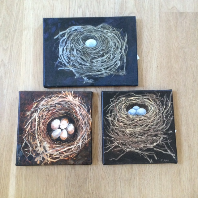 Set of high quality, giclee prints. Artist Carla Roth has captured three unique bird nests in this set.